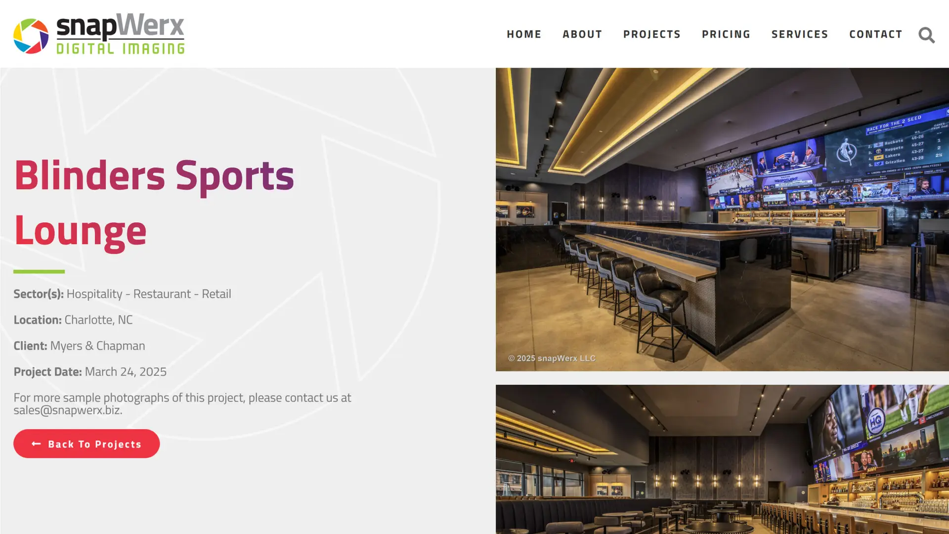 I designed and developed a website for snapWerx, a Charlotte-area architectural photography company that stands out with its excellent customer service and simple, affordable pricing for business-to-business clients.
